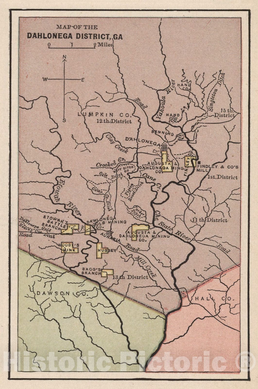 Historic Map : Map of the Dahlonega District, GA, 1880, Vintage